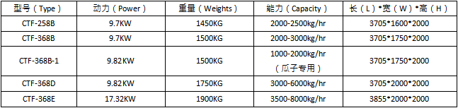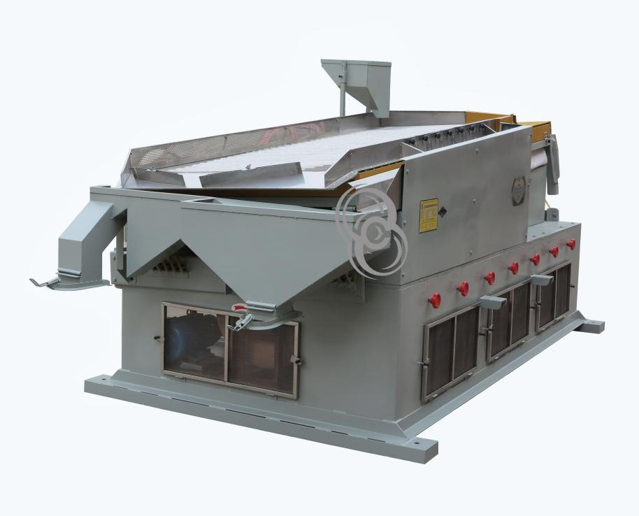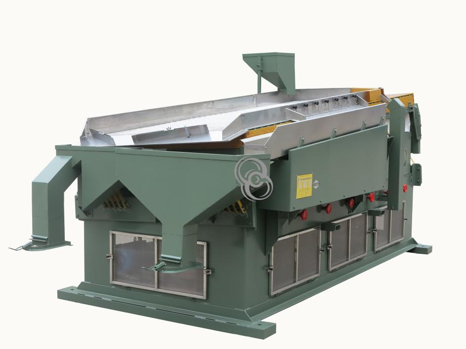 篩選體積相同而比重不同之豆類或谷類(如芝麻、綠豆、瓜子、種子等),去除未成熟與蟲蛀及破碎的豆類或谷類。不受場地限制,一般加工廠均可使用??梢牢锪项w粒大小、干濕度,調(diào)節(jié)速度進行篩選。此機型可單機使用,配合整廠設備(如選石機、大小選別機、磨光機…等)效果更佳。