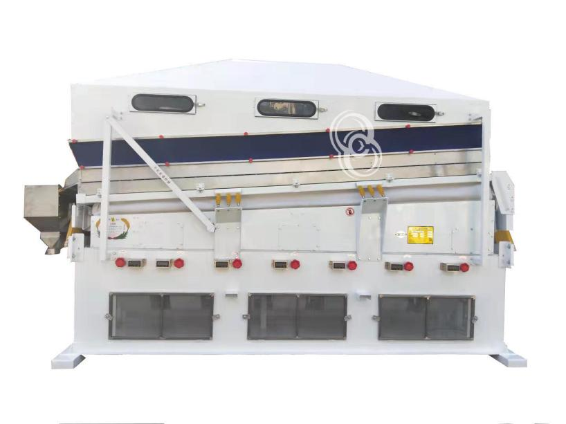 篩選體積相同而比重不同之豆類或谷類(如芝麻、綠豆、瓜子、種子等),去除未成熟與蟲蛀及破碎的豆類或谷類。不受場地限制,一般加工廠均可使用。可依物料顆粒大小、干濕度,調(diào)節(jié)速度進行篩選。此機型可單機使用,配合整廠設備(如選石機、大小選別機、磨光機…等)效果更佳。